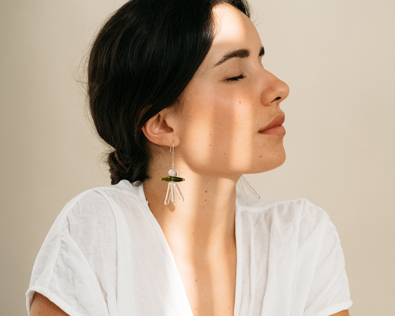 We had a chat on the topic with Micaela Lucas, founder of Mila Sai and Julia Ventura, artisan and founder of Brot Jewellery. The two young small business owners (both based in Barcelona) have a strong commitment in creating environmentally conscious jewelry and they both work with discarded glass, but the style and result is totally different.