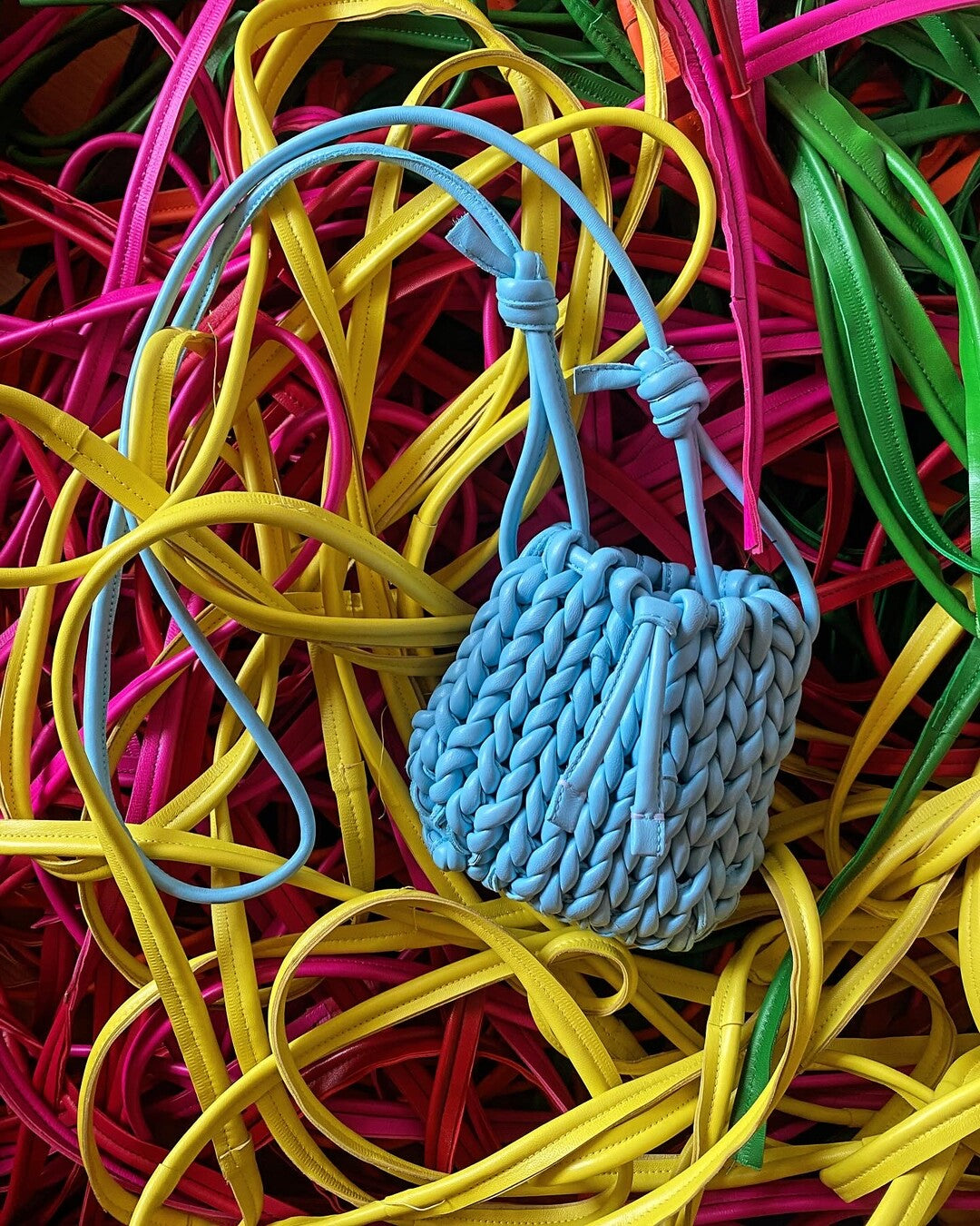 AGG's Studio specializes in merging basketry and macramé techniques to breathe new life into the reclaimed material. This fusion of traditional craftsmanship with contemporary innovation results in striking patterns and structures, each highlighting the unique qualities of the salvaged leather.