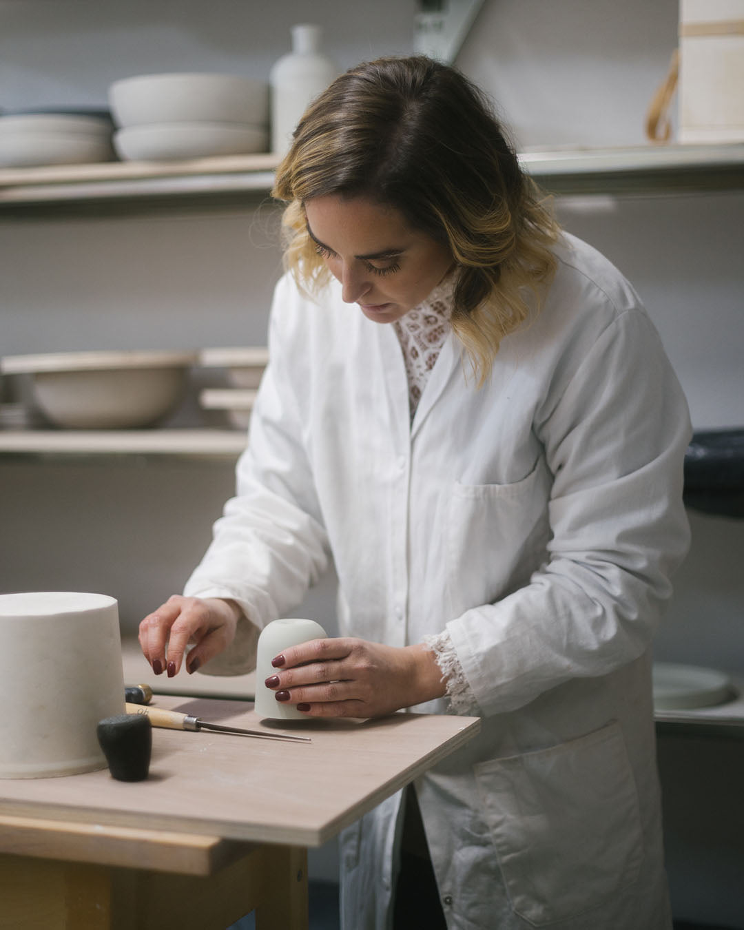 She was born in Toulouse, where she grew up in a family of women's shoe designers... It was in her grandfather's factory that she developed her senses... In contact with the workers who transformed a noble and living material, leather, which once passed through their skillful hands became a shoe, a piece of elegance. At the age of 10, her first pottery workshop was a revelation: she discovered the pleasure of creating with her hands, and experienced a fascinating material with infinite possibilities.