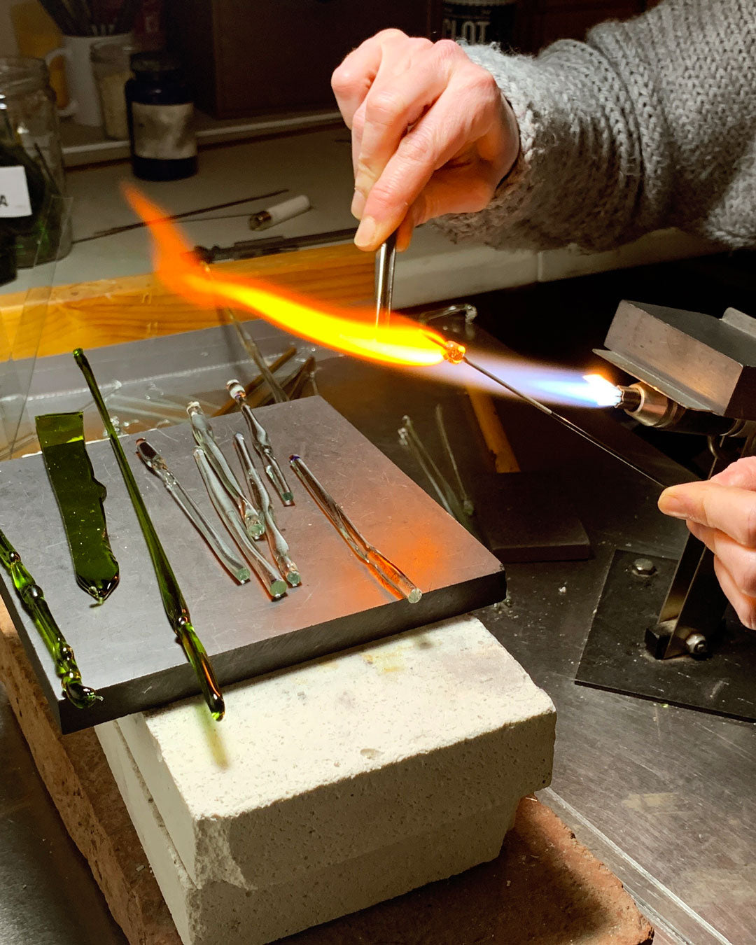 Mila Sai selects every bottle, which goes through a cleaning process before being cut and manipulated with heat.