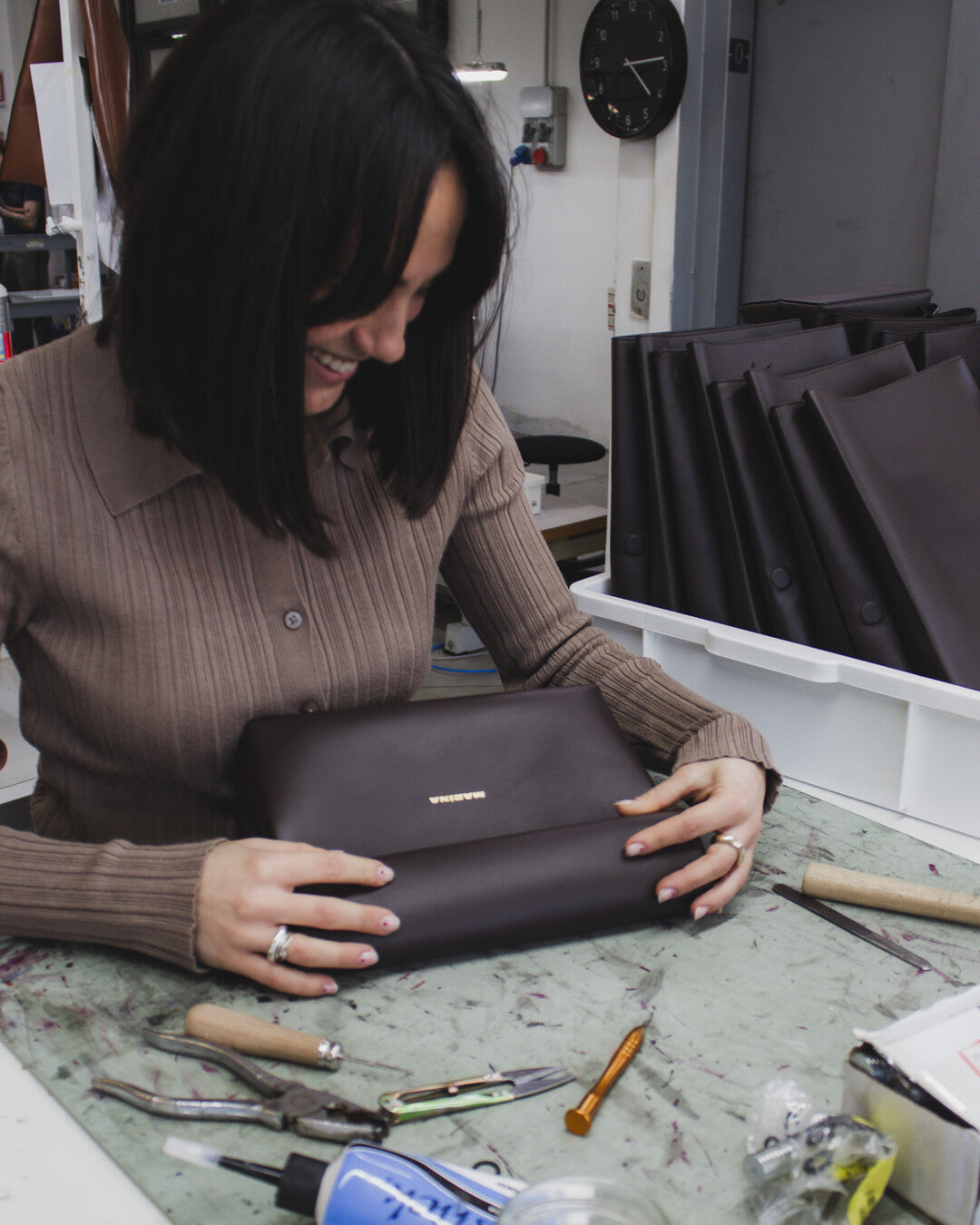 Marina uses only real leather, recovering the surplus from large companies. This allows her to reduce waste and give new life to high quality materials.