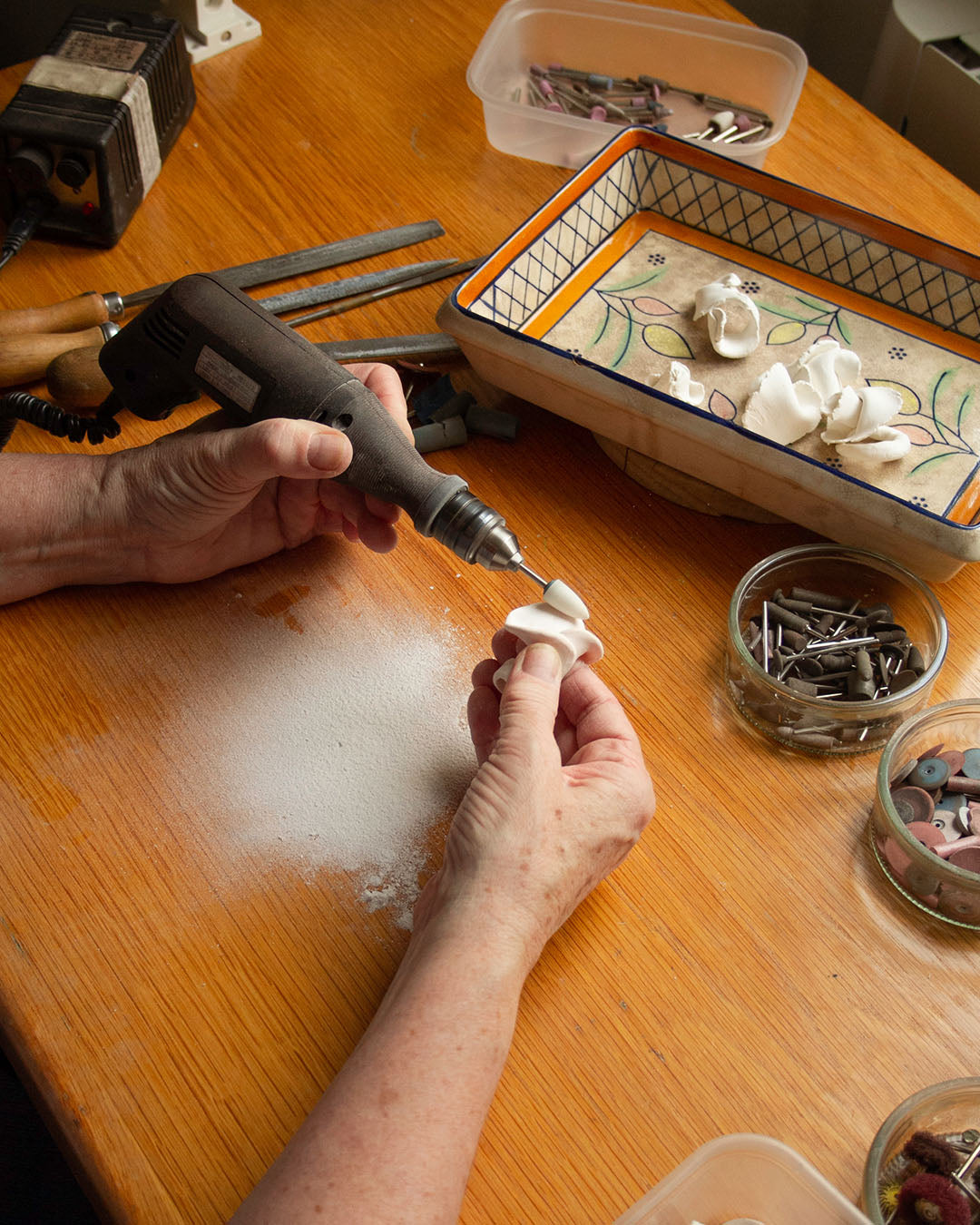 First shaped and moulded in clay, the final prototype is then cast in silver using a traditional lost wax technique.