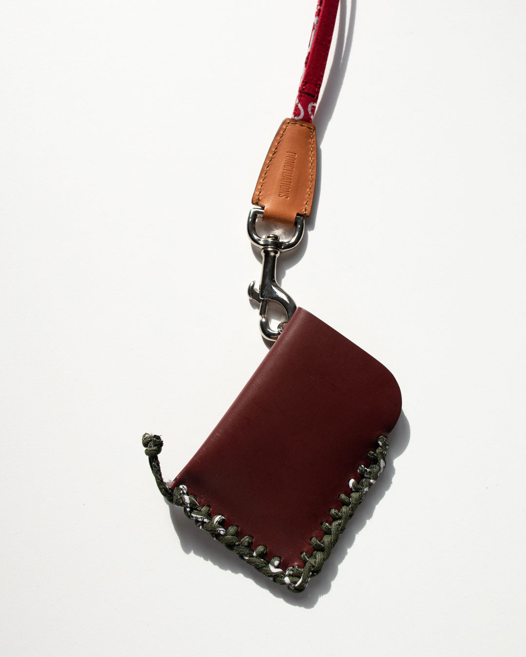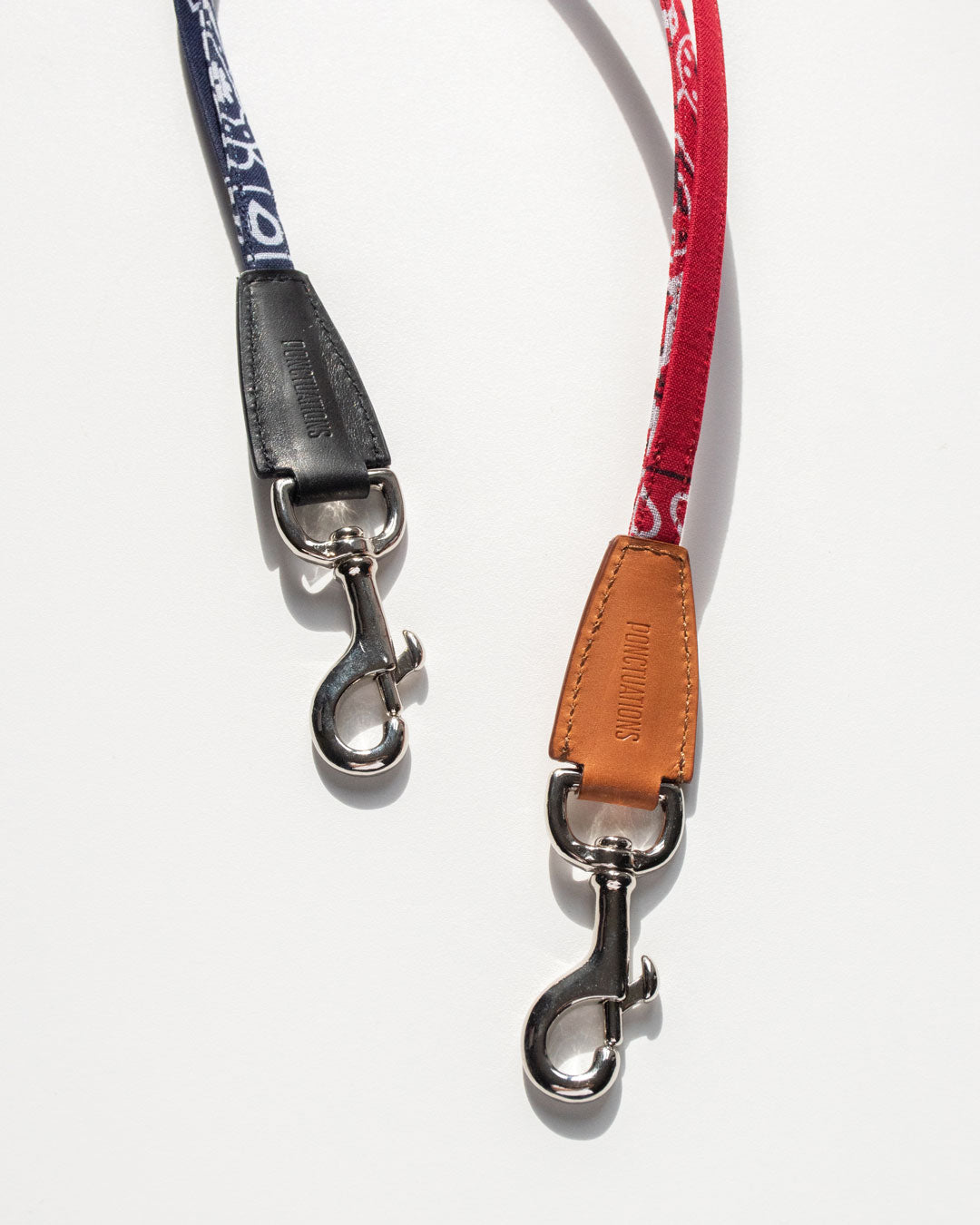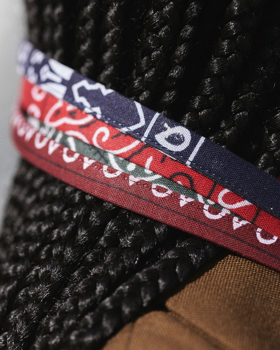 The bandana revisit traditional leather braiding techniques specific to saddlery and certain folklores. The iconic two-tone cotton print, emblematic of the Americana aesthetic, introduces a surprising dialogue with the elegance and style of leatherwork.