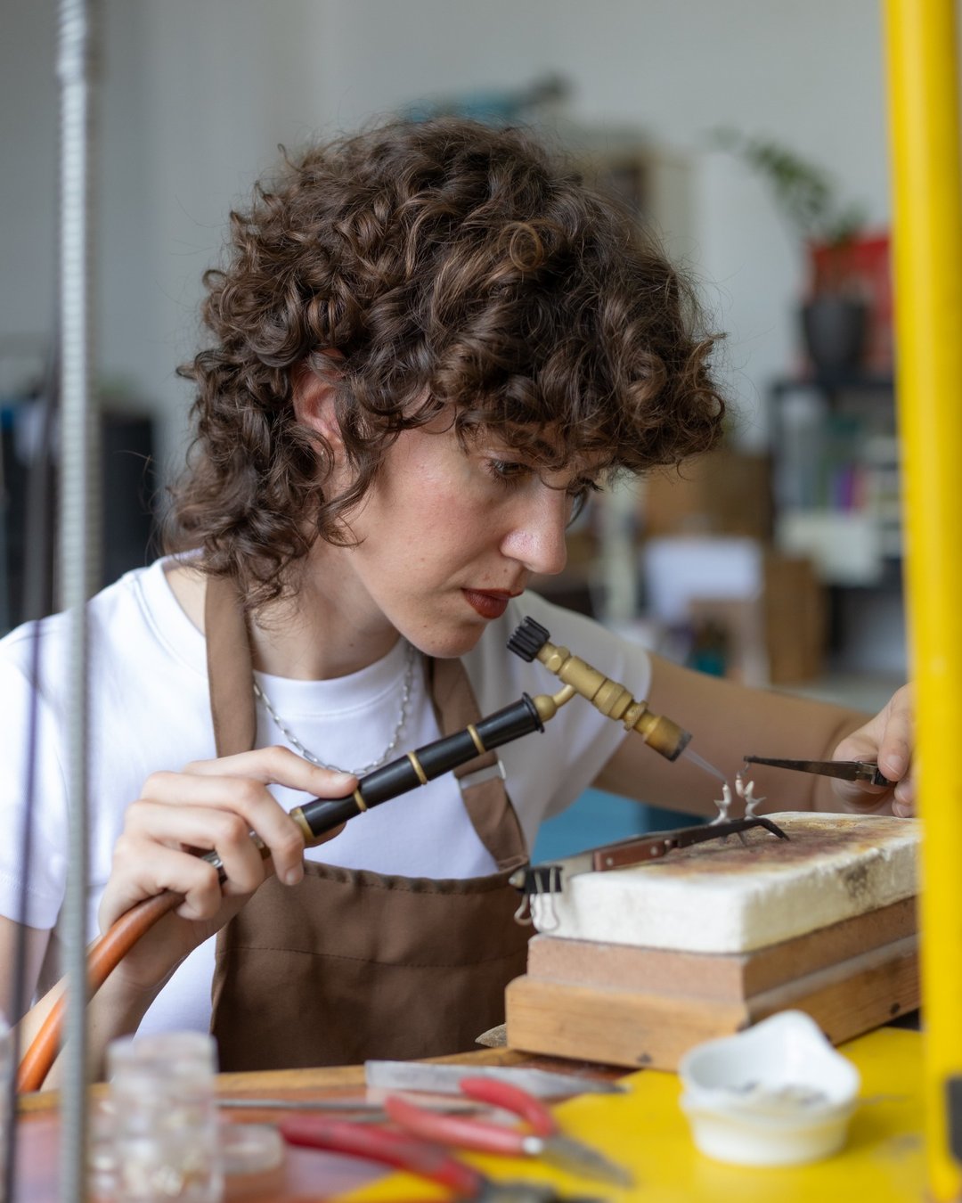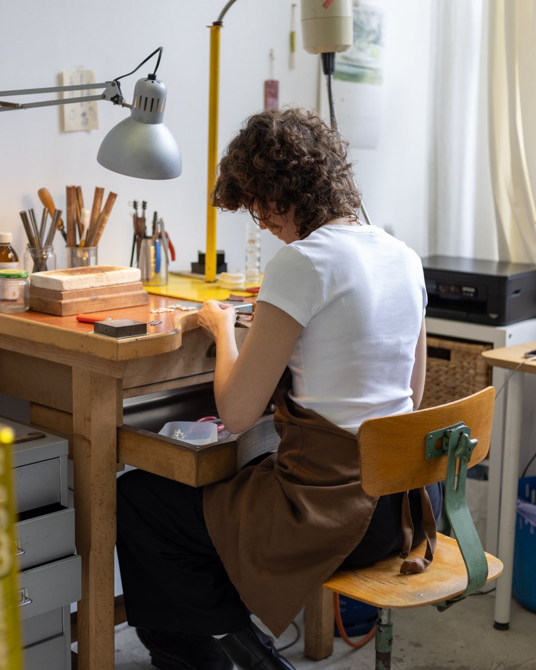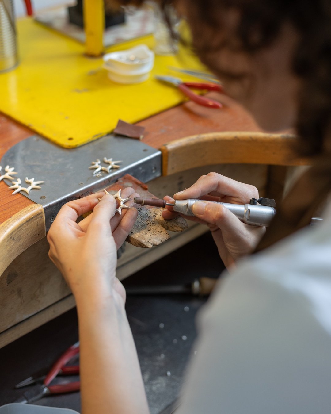 🖐🏻 The cube is 3D printed in wax and casted, and the silver band made by hand. Then the two parts are soldered.