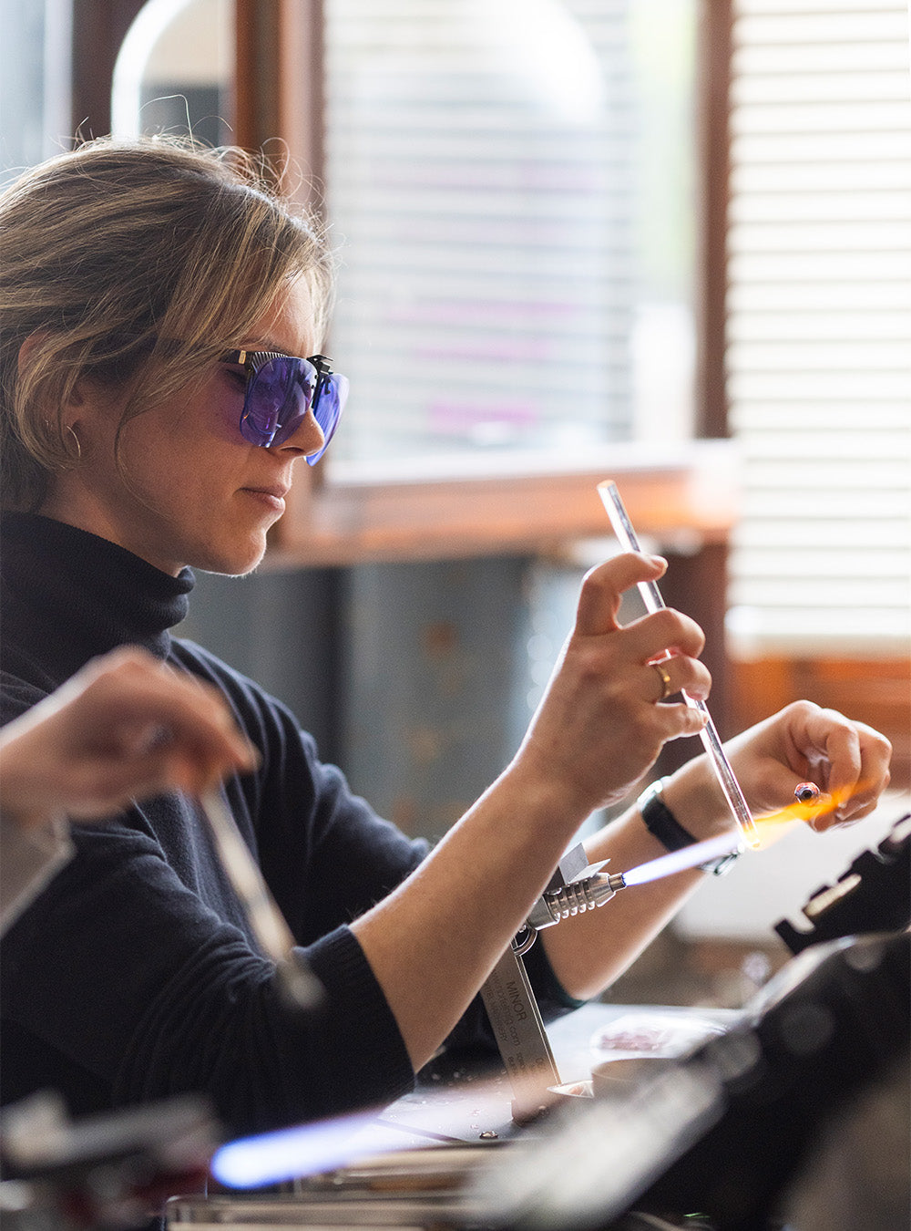 In the heart of Venice, Veronica crafts this piece using Murano glass through lampworking. Inspired by the shape of jellyfish, each piece is unique, featuring a fluid, organic design that echoes delicate marine forms. The glass's transparency and reflections captivate the light, creating an effect that evokes the movement of waves. This ring is not just an accessory, but a true homage to the beauty of nature—perfect for those who want to wear an original and evocative piece.
