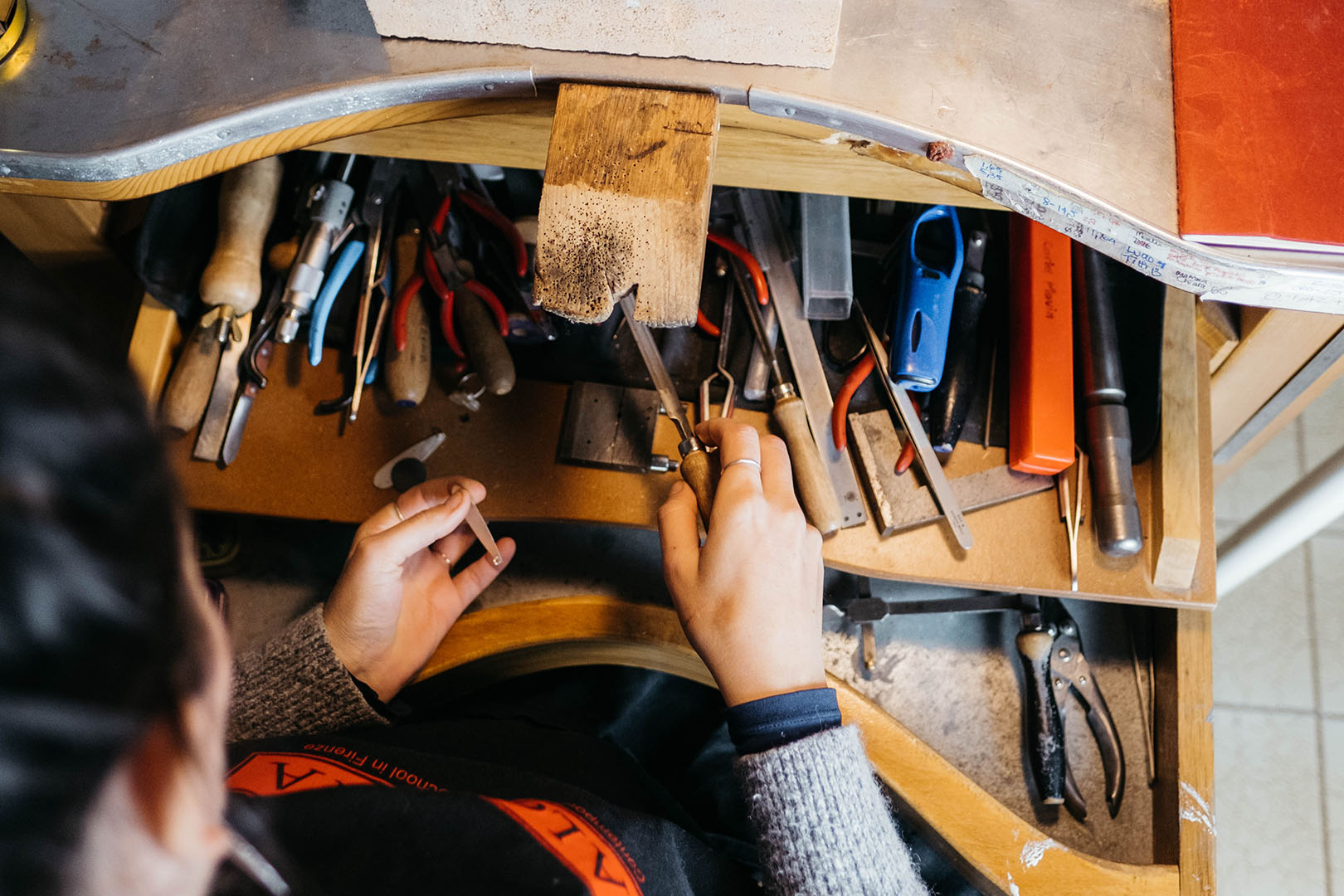 Filigree making feeds the interest that Carla Movia has towards intricate ancient aesthetics: its floral and feminine nature, its slow and meditating process on one hand fulfils her curiosity of ancient techniques and on the other it results in delicate yet complex pieces which she’s naturally drawn to. Carla Movia’s work is characterised by a constant research in finding a balance between these two contrasting aspects, in an attempt of rethinking filigree as an element of construction and not merely means of decoration.