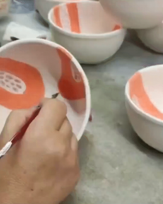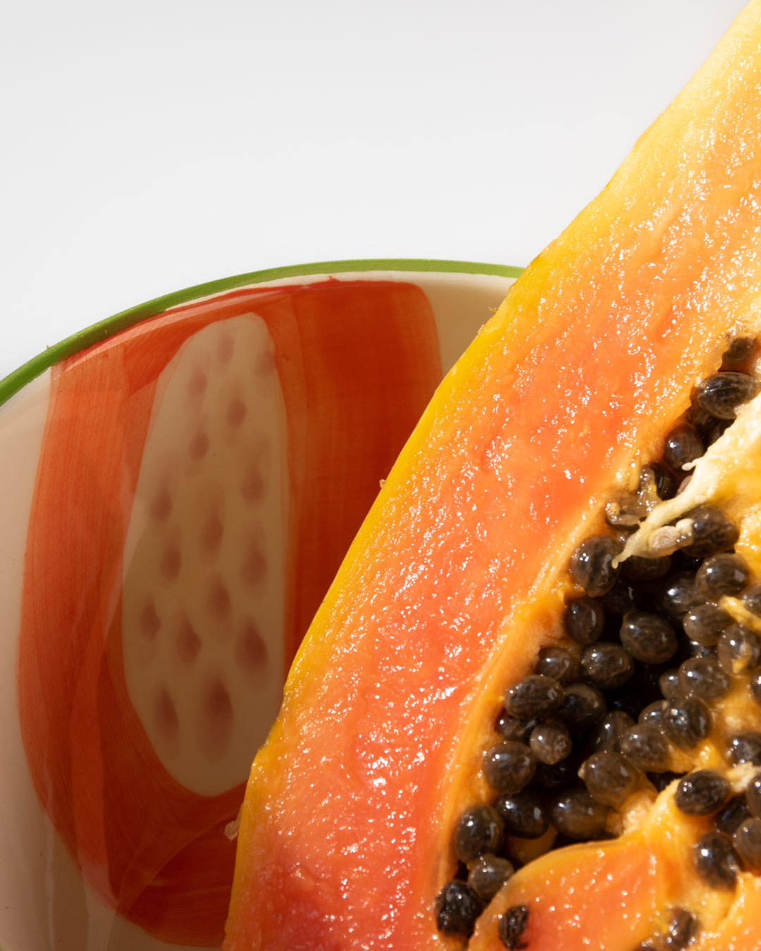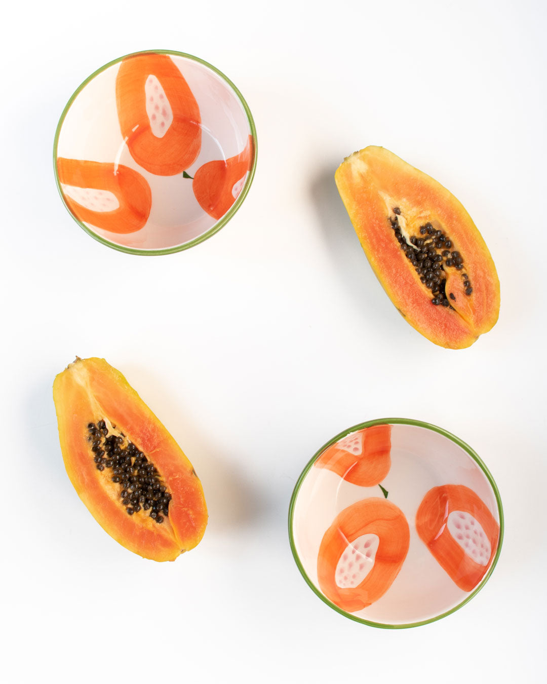 The Papaya Bowl is a bright hand-painted bowl ideal for cereals, porridge, açai bowl, snacks or even a soup.