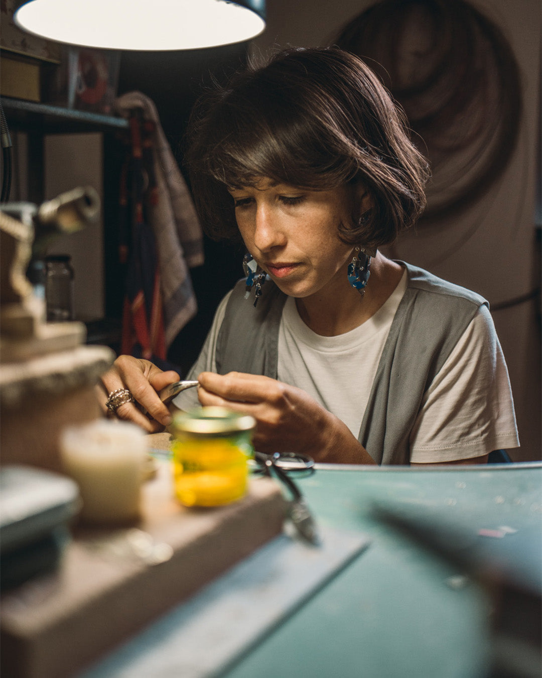Adorn your body with precious flowers! Herbarium collection captures the ephemeral beauty and delicacy of flowers by shaping and coloring metal. Lightweight but resistant laser-cut brass petals compose a collection of dynamic earrings/necklaces, perfect for any moment of the day.