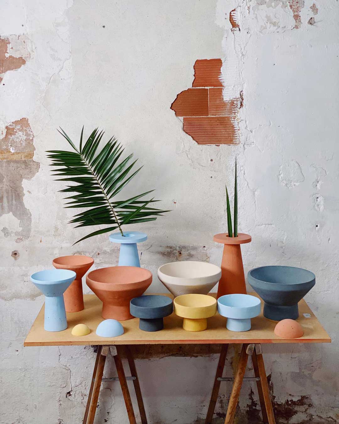 Cecilia Cup s'inspire de l'architecture industrielle capturée dans le travail photographique de Hilla et Bernd Becher. Texture, poids, rugosités et imperfections caractéristiques du béton sont présents en harmonie avec un design minimaliste et coloré. Surface douce au toucher au fini mat. Convient pour placer de l'eau sans marquer l'humidité.