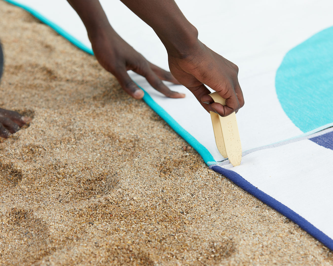 - 4 épingles Tucca pour fixer la serviette dans le sable et la relier avec d'autres Tuccas ;