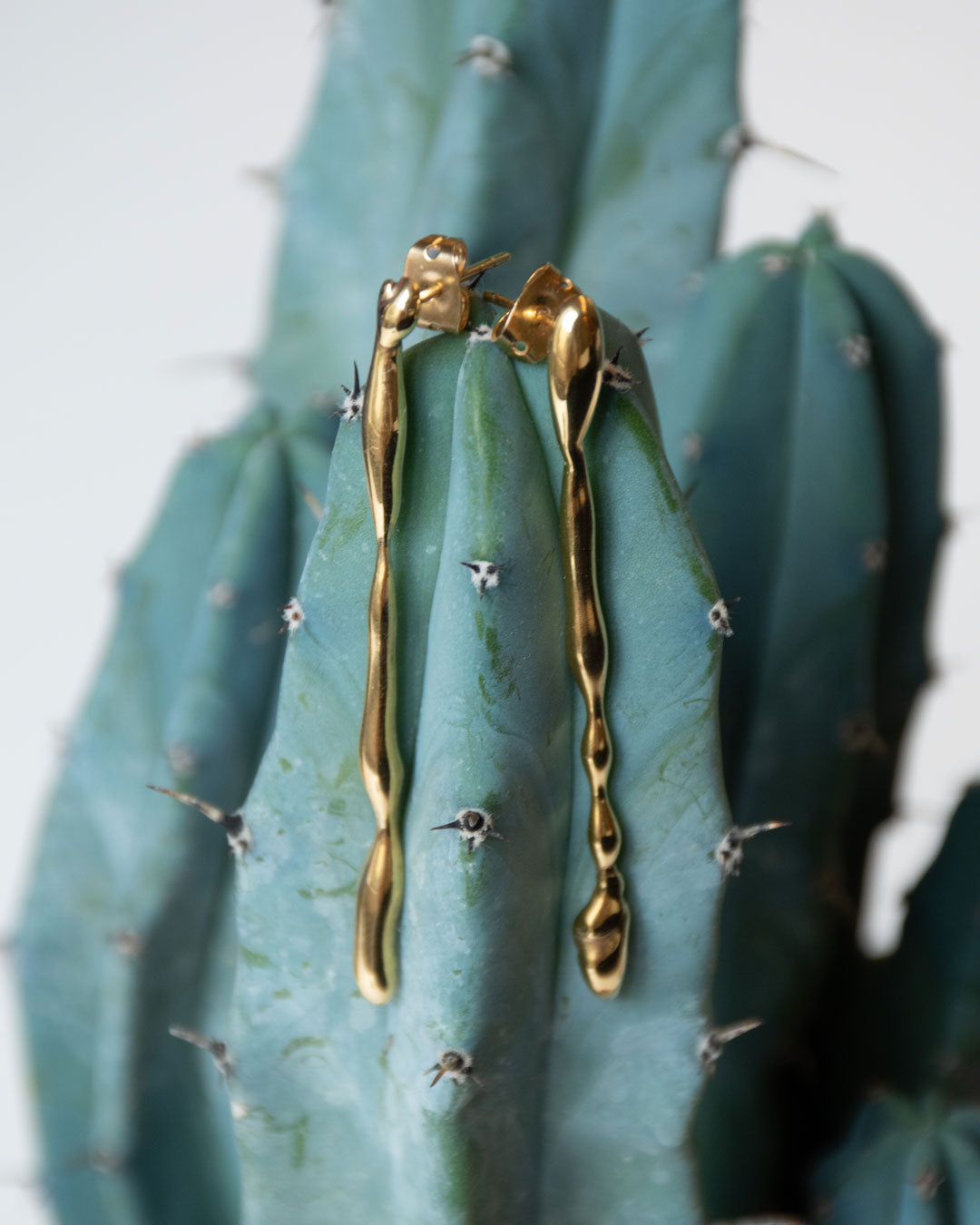 Boucles d'oreilles Fluida Match - inspirées des courbes douces de la cire et fabriquées avec du métal précieux.
