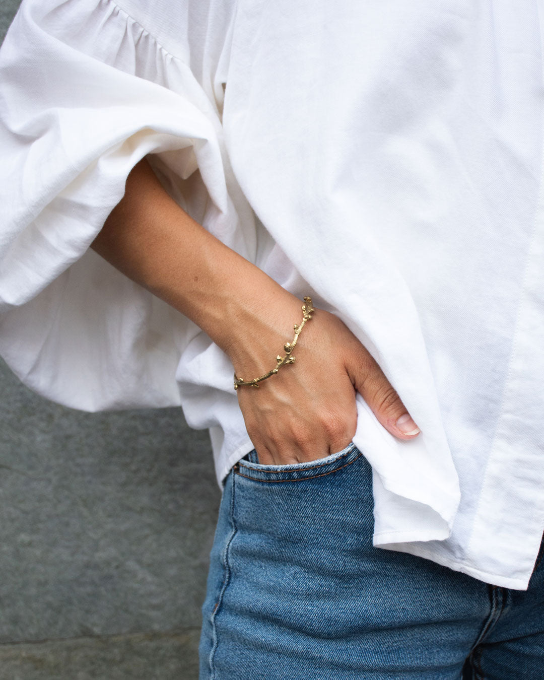 Les bracelets Gea sont disponibles en argent 925, en bronze jaune ou en or jaune 9 carats.