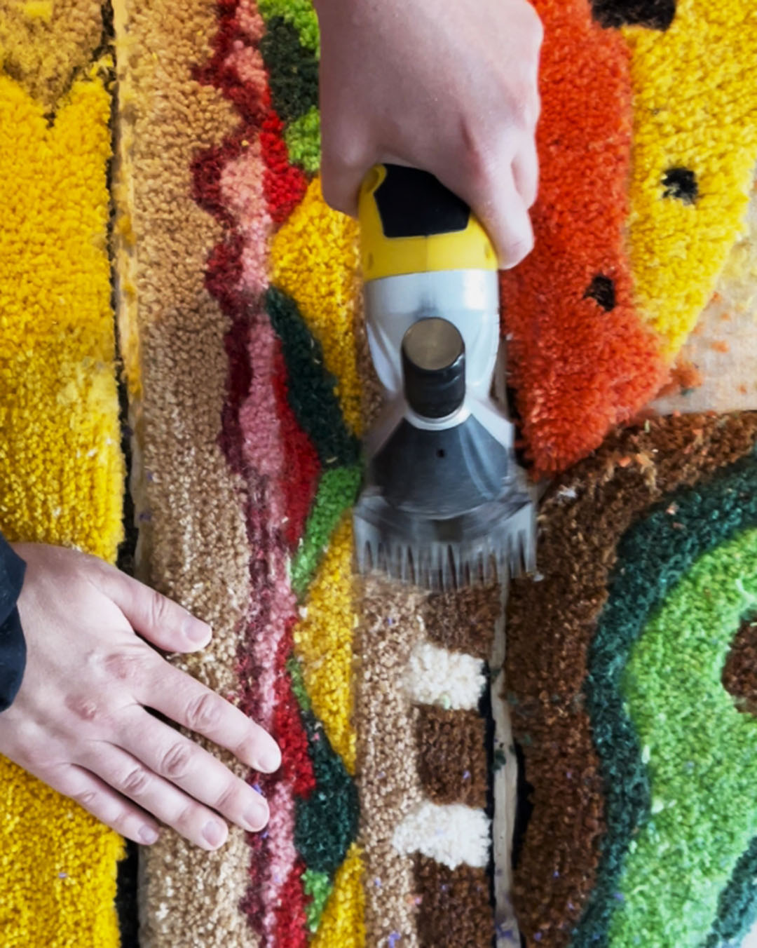 Que vous recherchiez une décoration de cuisine ou de chambre à coucher, cette décoration murale aubergine apportera sûrement une touche de couleur ludique à votre maison. Chaque aubergine est dessinée à main levée sur le cadre touffeté, donnant à chaque pièce une personnalité unique et faisant de votre œuvre d'art un design unique. Chaque tapis est composé à 100 % de laine de Nouvelle-Zélande, ce qui le rend naturellement hydrofuge et résistant à la saleté. Le matériel est cousu au dos pour une suspension facile.