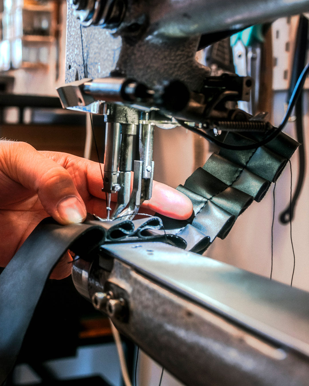 Sling bag in vegetable-tanned leather entirely made by hand. Contrasting details in 22k gold-plated brass. A reinterpretation of the classic sling bag with a minimalist and elegant design, versatile and practical. The shoulder strap is easily adjustable and can be worn as a funny pack, shoulder bag or cross-body bag.