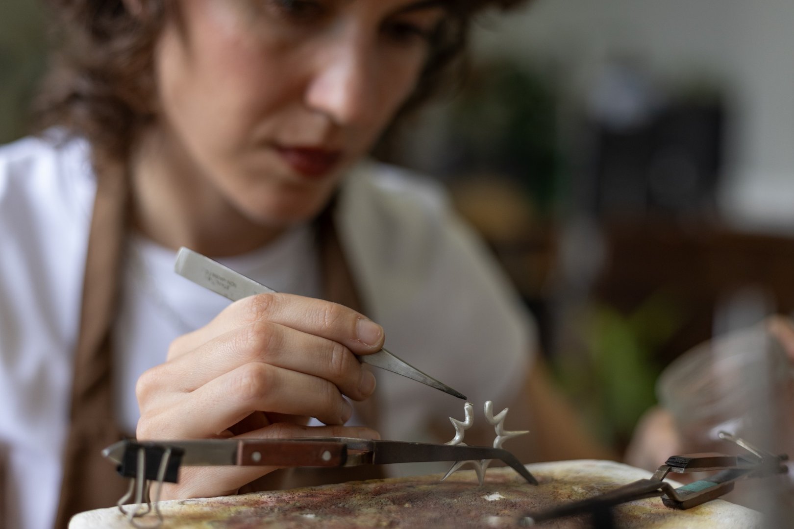 Shaped by 3D modeling, casted in silver, and meticulously soldered, these earrings feature a secure clasp to ensure peace of mind.