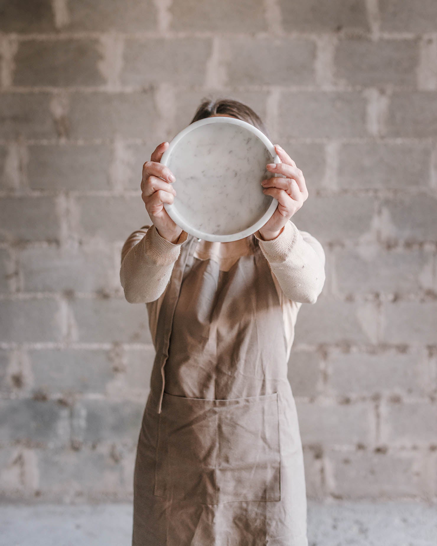 Hai qualcosa da tenere? Questa lastra di marmo bianco funge da contenitore. È rotondo, in marmo bianco di Carrara, né troppo grande né troppo piccolo.
