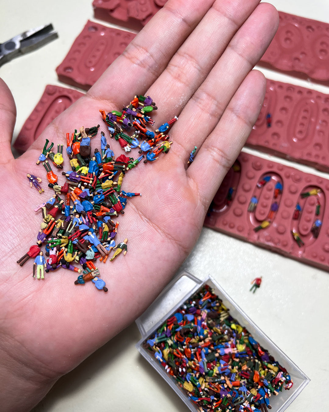 Da notare che, poiché le persone sono dipinte a mano, ogni coppia è unica nel suo genere, con colori e personaggi in miniatura unici.
