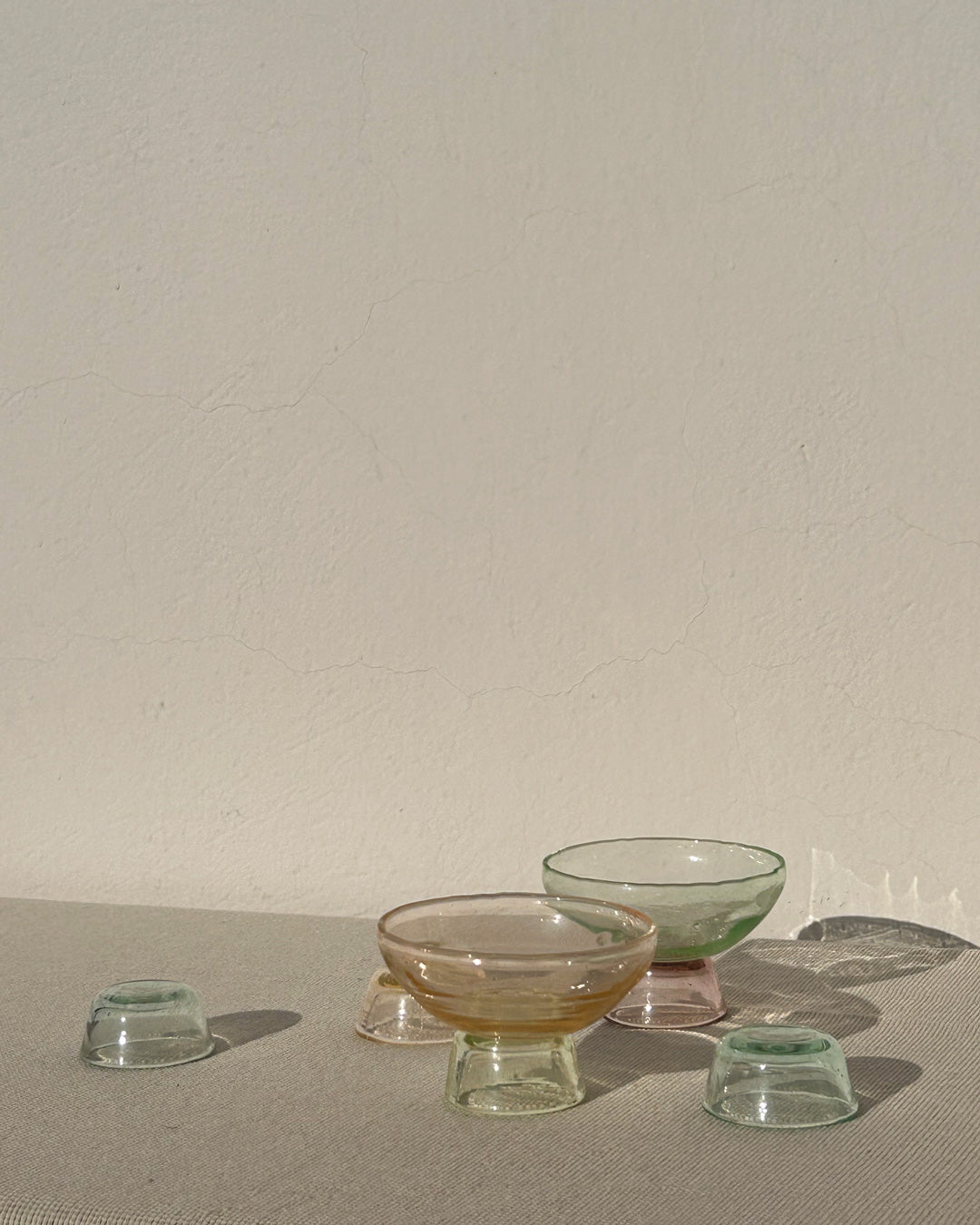 This jug is made with recycled glass bottles collected in Nabeul, Tunisia.