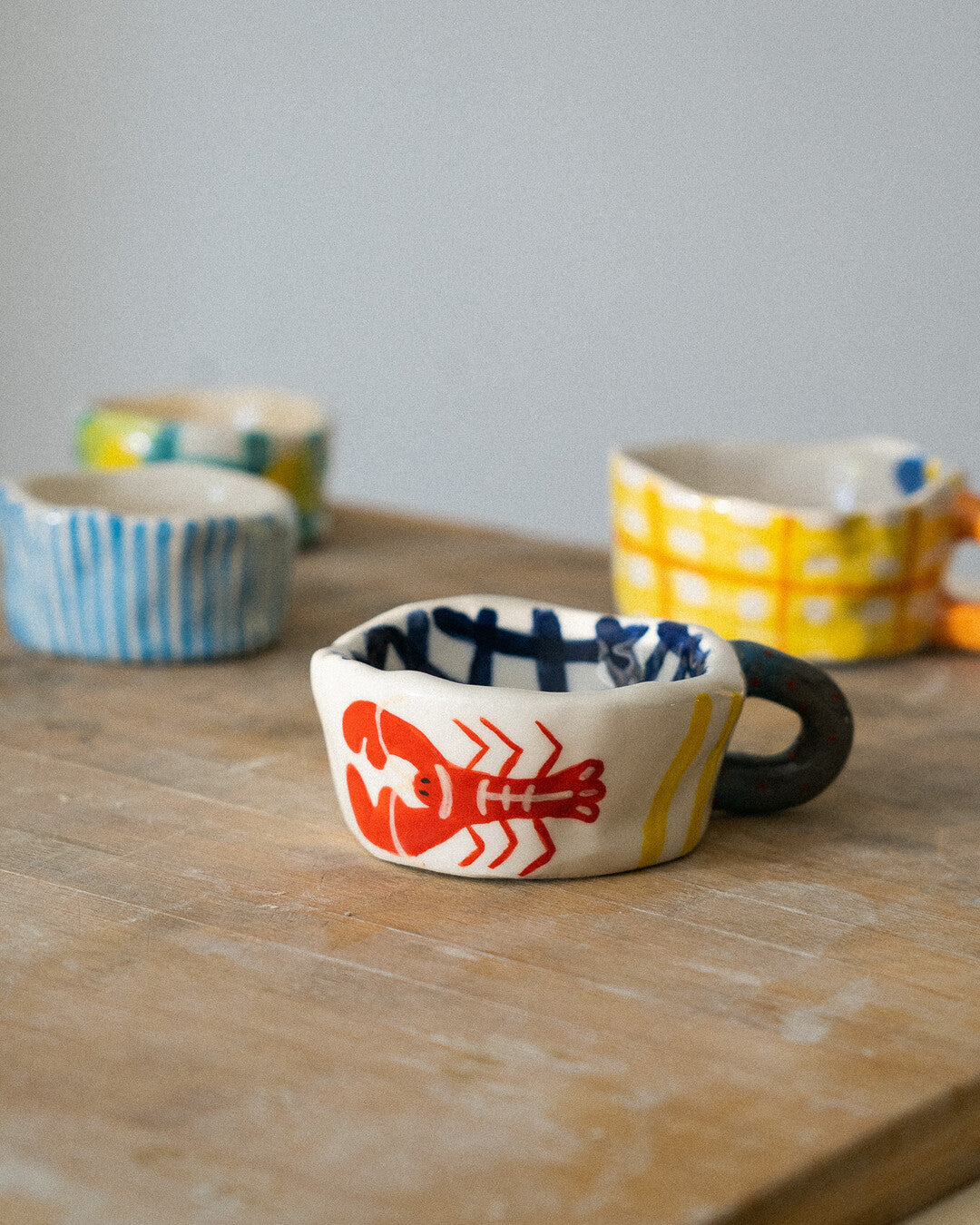 This bicolor mug is handbuilt with the "pinch" technique obtaining a very organic irregular shape that immediately communicates the idea of craftsmanship.