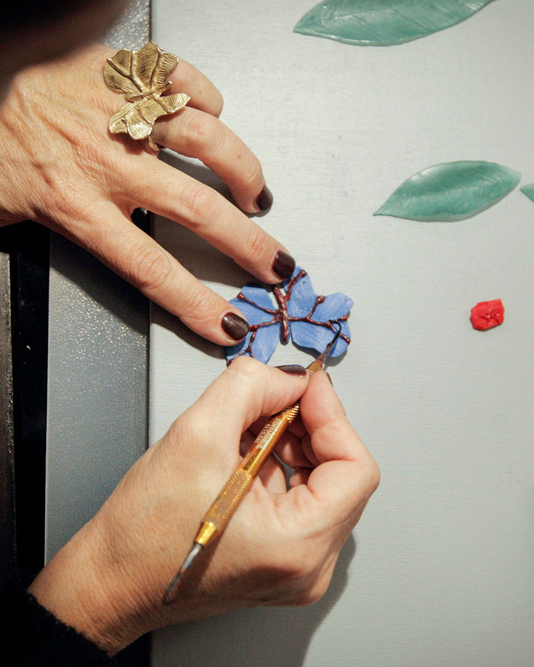 Designed and sculpted by the designer herself, each piece is handmade in Italy using the traditional lost-wax casting technique. The jewelry is crafted in 24 carat gold plated bronze, or 925 silver.