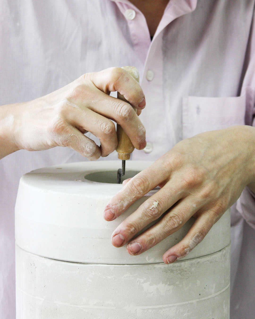 The POOL collection is a series of porcelain plates with a unique underglaze pattern on each item. The aqueous decor is applied onto the plate in an experimental process. The archetypal shape and the pure white of the porcelain are providing a clear framework for the natural pattern. The plate is fired at 1400°C and has a glazed surface. It is produced in collaboration with renowned porcelain manufacturer KAHLA Thüringen Porzellan. Please note: Due to the process of making the pattern and intensity of color varies slightly from piece to piece.